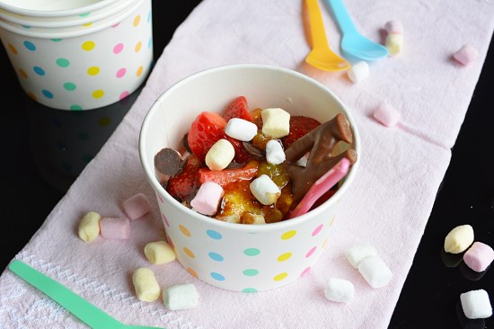 Zurzeit gibt es für mich nichts besseres als einen Frozen Joghurt mit frischen Früchten und ein paar leckeren Süßkram oben drauf. Doch da ich nicht jeden Tag in Hamburg bin und mir so etwas Leckeres kaufen kann, dachte ich mir, dass man den doch auch ganz einfach selbermachen kann.
